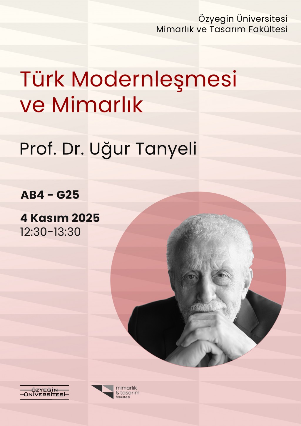 As part of the Republic and Atatürk Commemoration Events, on Tuesday, November 4, 2025, at 12:30 p.m., Uğur Tanyeli will deliver a lecture titled “Turkish Modernization and Architecture” in Room G25, AB4.