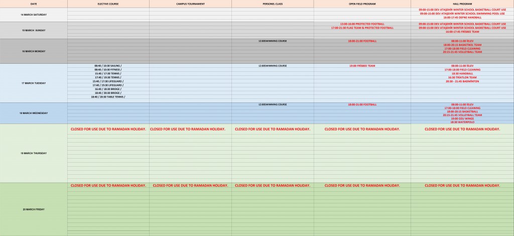 The Sports Center presents the Activity Bulletin for the week of March 14-20 for your information.