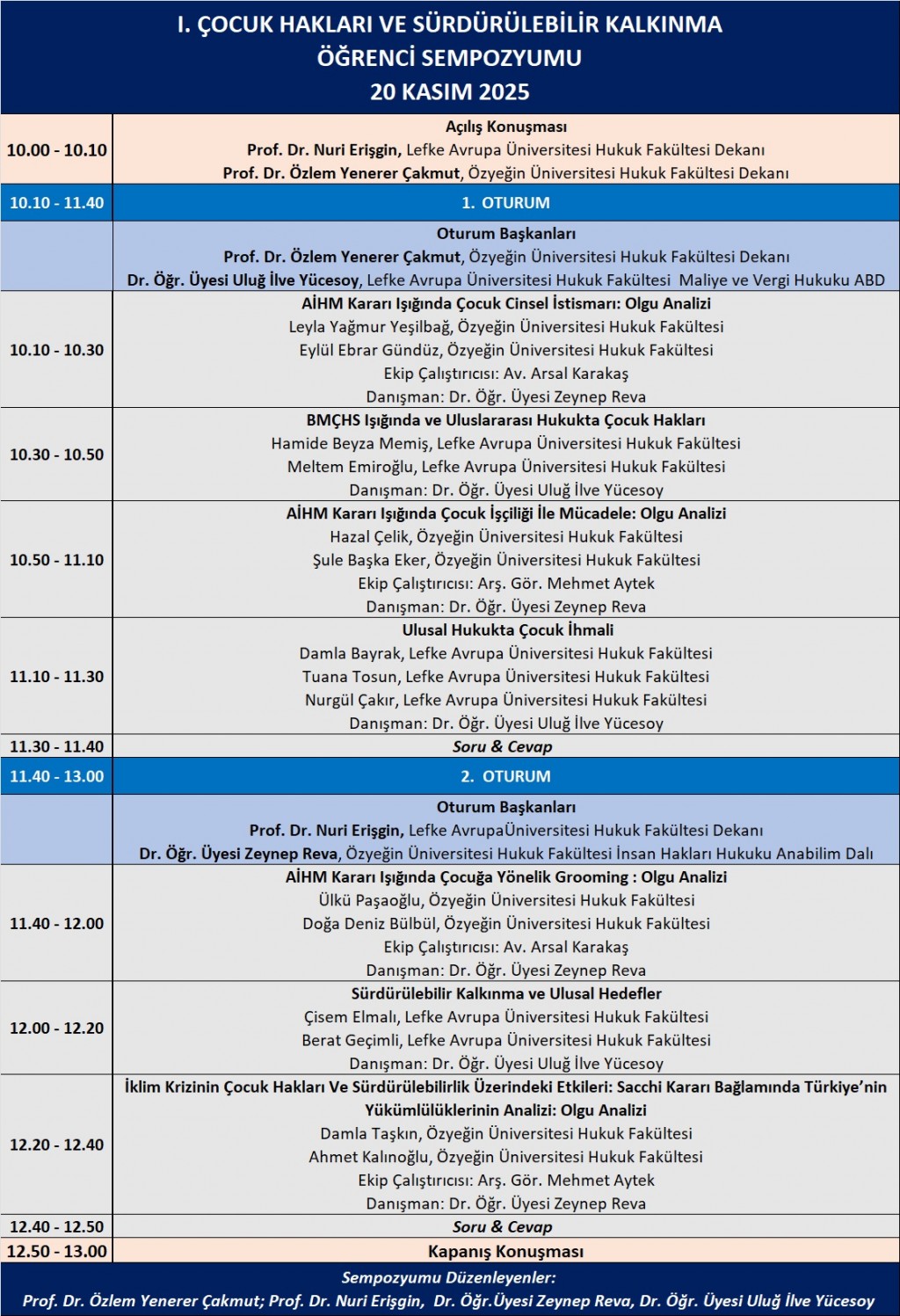 Organized in collaboration with Özyeğin University Faculty of Law, the event titled ‘The First Student Symposium on Children’s Rights and Sustainable Development’, held within the scope of World Children’s Rights Day, will take place online via Zoom on Thursday, November 20, 2025, between 10:00 and 13:00.